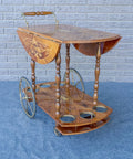Hollywood Regency Italian Drop Leaf Two Tier Marquetry Inlay Cocktail Bar Cart Tea Trolley - Italy