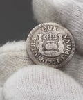 Revers : Globes couronnés flanqués de piliers couronnés avec bannière et date en dessous. Avec marque d'atelier, initiale de l'essayeur et légende.