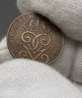 Avers : Le double monogramme couronné du roi Gustaf V de Suède divise la date. La devise du roi