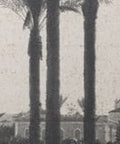 En arrière-plan, des monuments architecturaux remarquables témoignent de la transformation de Tripoli sous la domination italienne (1911-1943), mêlant des styles coloniaux italiens à des influences locales. L'avenue bordée de palmiers et la fontaine offrent ensemble une oasis de tranquillité au cœur d'un paysage urbain colonial en pleine évolution.