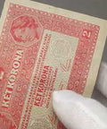 Reverse: Displays two female portraits facing inward. The text “KÉT KORONA” is printed at the top and “KET KORONA” at the center. Ornamental borders and the denomination “2” are shown in all corners.