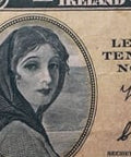 Revers : Le revers du billet présente une gravure détaillée de la tête d'un grand roi celtique, entourée d'un motif complexe de nœuds celtiques. Deux cadres circulaires vides. Le dessin présente des motifs irlandais traditionnels dans des tons verts et jaunes.