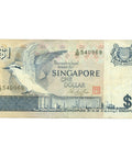 Obverse: Features a Black-naped Tern in flight, symbolizing grace and freedom. Below is the skyline of Singapore’s central business district during the 1970s. To the right is the national coat of arms with the motto “Majulah Singapura.” The note is bilingual, with the word “Singapore” printed in English, Malay, Chinese, and Tamil. Serial number “D/86 540969” appears in black.