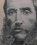 Avers : Portrait de Ramón Castilla, éminent caudillo et président péruvien, avec des motifs d'arrière-plan complexes comprenant les armoiries péruviennes et la figure des lignes de Nazca.
