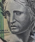 Avers : L'effigie de la République, symbole allégorique du Brésil, figure à droite. Au centre, une image commémorant le centenaire de la République représente des personnages historiques clés du mouvement d'indépendance du Brésil. Des motifs ornementaux et la valeur nominale sont affichés sur toute la surface.