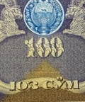 Inscription avers : ЎЗБЕКИСТОН РЕСПУБЛИКАСИ МАРКАЗИЙ БАНКИ (Banque centrale de la République d'Ouzbékistan), 100 СЎМ, numéro de série EW2526610, 1994.