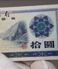Reverse: Features English and Chinese text declaring the note as a Foreign Exchange Certificate, equivalent in value to the Renminbi Yuan but only usable within China at designated locations. Denomination “10” and “TEN YUAN” appear at left and right, framed by elaborate guilloche patterns.