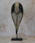 Well known for their reliquary figures the Fang also danced finely sculpted masks during a number of ritual activities. Among the Fang, white-painted masks identified with the Ngil society are known for their elegant abstractions of the human face. Ngil masks have been described as having a 'heart-shaped face' due to the facial features emphasizing refined curves of the orbital ridges above the eyes and the prominent line of the long tapering nose that ended above a discretely mouth carved at the bottom of the chin that completes the abstraction of the face. The Fang people used masks in their secret societies. Members of this male society wore the Ngil masks during the initiation of new members and the persecution of wrongdoers. Masqueraders, clad in raffia costumes and attended by helpers, would materialize in the village after dark, illuminated by flickering torchlight.