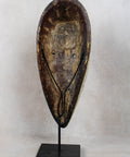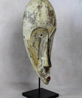 Well known for their reliquary figures the Fang also danced finely sculpted masks during a number of ritual activities. Among the Fang, white-painted masks identified with the Ngil society are known for their elegant abstractions of the human face. Ngil masks have been described as having a 'heart-shaped face' due to the facial features emphasizing refined curves of the orbital ridges above the eyes and the prominent line of the long tapering nose that ended above a discretely mouth carved at the bottom of the chin that completes the abstraction of the face. The Fang people used masks in their secret societies. Members of this male society wore the Ngil masks during the initiation of new members and the persecution of wrongdoers. Masqueraders, clad in raffia costumes and attended by helpers, would materialize in the village after dark, illuminated by flickering torchlight.