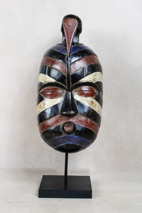 The Songye mask is an extraordinary and culturally significant art piece originating from the Songye people of the Democratic Republic of Congo. These masks are characterized by their iconic features, including a highly arched forehead and prominent eyes, all meticulously carved from wood.