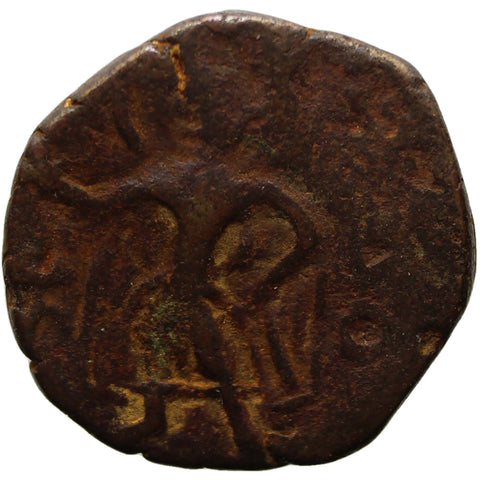 Reverse: Goddess Nana standing right, nimbate, holding bowl and protome of animal