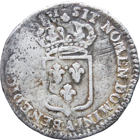 1720 A 10 Sols, 1/12 Ecu Louis XV Silver Coin Struck Over 1719 10 Sols of Franc-Navarre