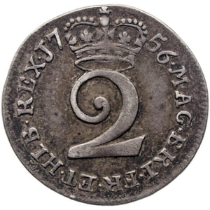 1756 2 Pence George II Coin UK Maundy Coinage Silver