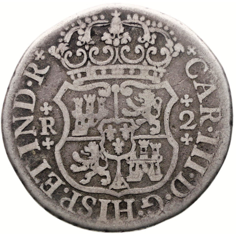 1768 M 2 Reales Mexico Coin Carlos III Spain Silver