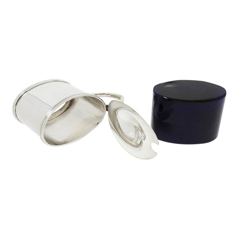 1788 Antique George III Era Sterling Silver Mustard Pot with Blue Glass Liner Silversmiths Samuel Godbehere & Edward Wigan London Hallmarks