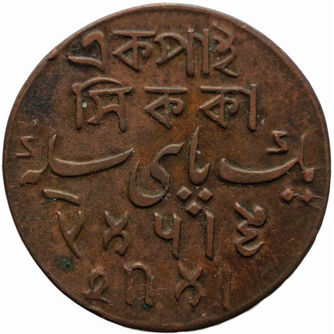 Reverse legend: “এক পায় সিককা یک پای سکہ એક પાઇ થીકા”