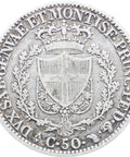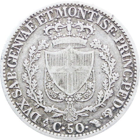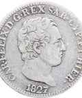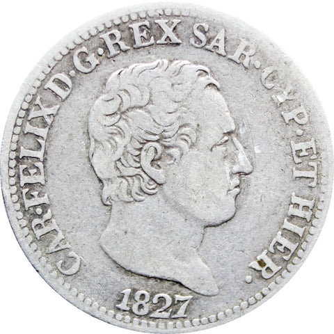 1827 L 50 Centesimi Charles Felix Italy states Sardinia Silver Coin