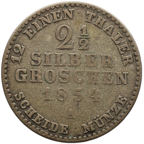 1854 2 1/2 Silber Groschen Germany Prussia Friedrich Wilhelm IV Coin Silver