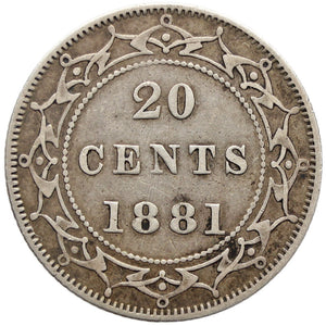 1881 20 Cent Newfoundland Coin Queen Victoria Silver