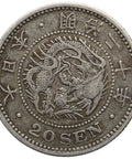 1887 20 Sen Japan Coin Meiji Silver Year 20