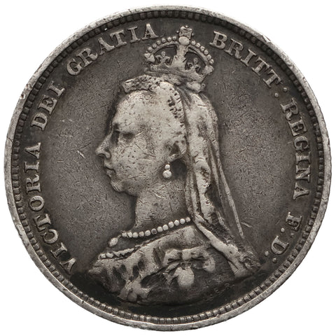 1890 Shilling Victoria Silver Coin 2nd portrait; 2nd type