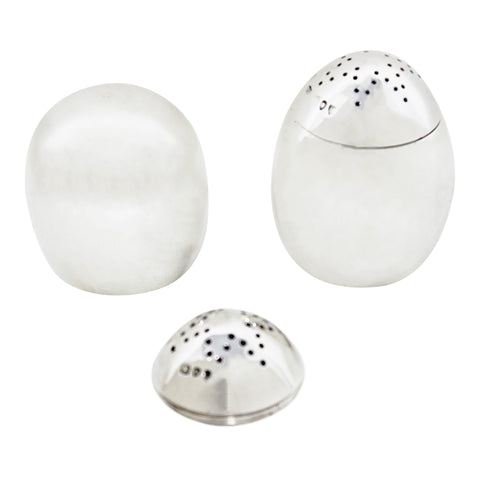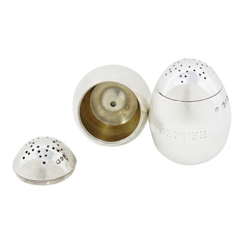 1892 Antique Victorian Era Egg Shaped Sterling Silver Pair Pepper and Cayenne Shakers Silversmith William Hutton & Sons (Edward Hutton) London Hallmarks
