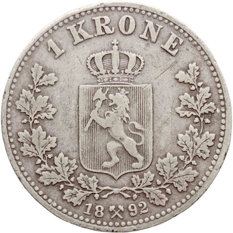 1892 One Krona Norway Coin King Oscar II