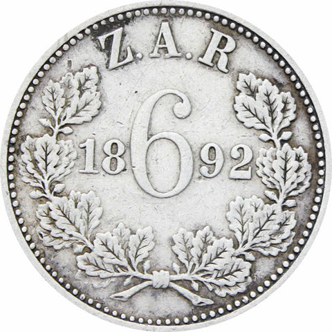 1892 ZAR South Africa Paul Kruger silver six pence coin