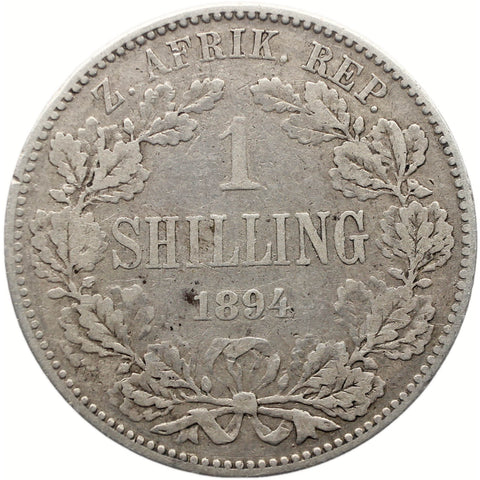 Reverse legend: Z. AFRIK. REP. 1 SHILLING 1894