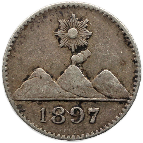 1897 1/4 Real Guatemala Coin Silver bent-leaf variety