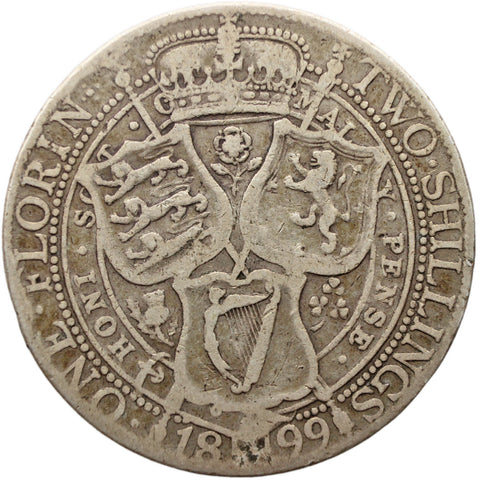 1899 Florin Victoria Coin UK Silver Two Shillings