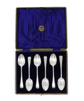 1900 Antique Victorian Era Sterling Silver Set Six Teaspoons Ornately Engraved with Original Box Sheffield Hallmarks John Round & Sons Ltd. Maker
