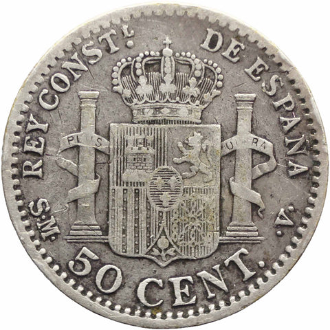 1904 SMV 50 Centimos Spain Coin Silver Alfonso XIII 4th portrait