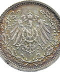 1905 A Germany Half Mark Wilhelm II Coin Silver (type 2 - small shield)