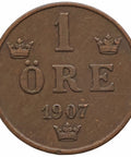 1907 1 Ore Sweden Coin Oscar II