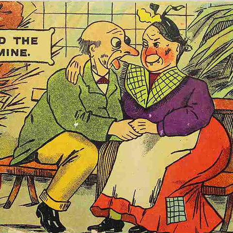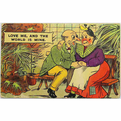 1908 Antique Comic Postcard - Love me, and the world is mine. King Edward VII Halfpenny Stamp
