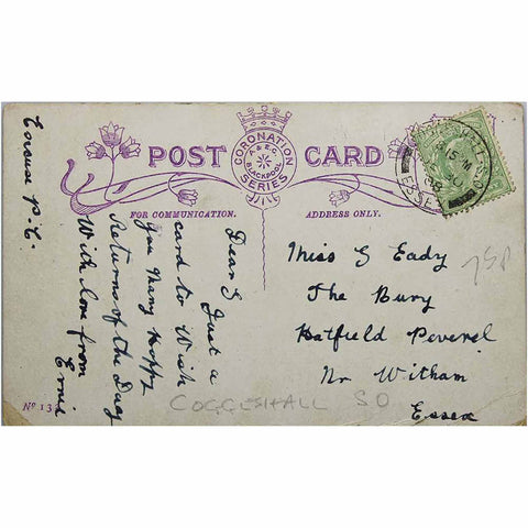British antique postcard, published by A.&E.C. BLACKPOOL "CORONATION SERIES" Series. No. 132. The text on the front says: "Love me, and the world is mine”.