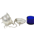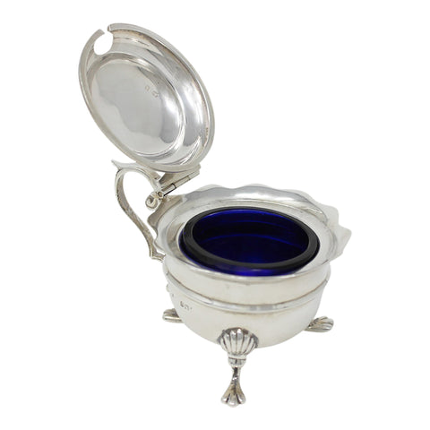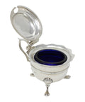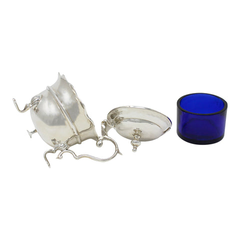 1908 Antique Edwardian Era Sterling Silver Mustard Pot with Blue Glass Liner Silversmiths E S Barnsley & Co (Edward Souter Barnsley) Birmingham Hallmarks