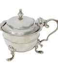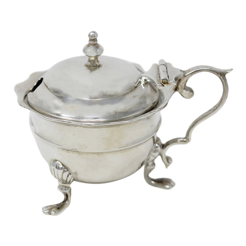 Measurements: 6.5 cm in height, 8 cm in length Condition: Lovely antique condition, no splits or cracks, no solder repairs, just minor little age-related surface bruises from normal use, has some tiny dents but really nothing much at all. Mustard pot has a blue glass liner.