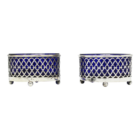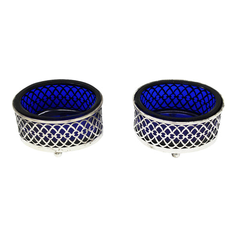 1908 Antique Pair Sterling Silver Salt Cellars G E Walton & Co Ltd -George Edwin Walton Birmingham Hallmarks