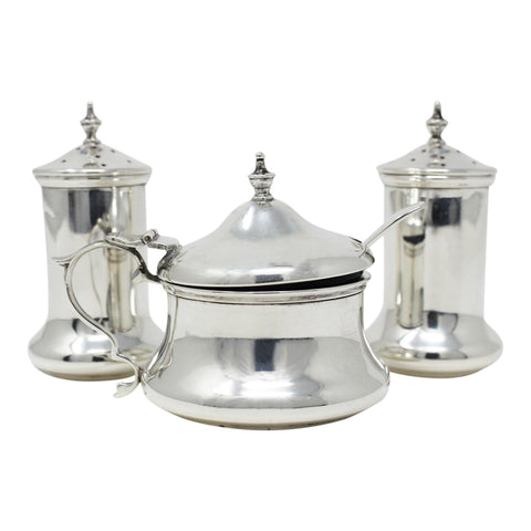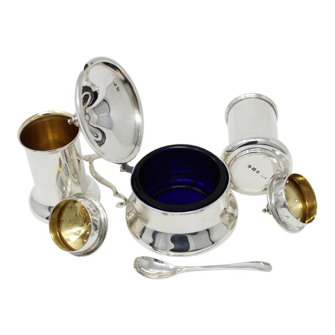 1909 Antique Edwardian Era Cruet Set Sterling Silver Maker Deakin & Francis Ltd Birmingham Hallmarks