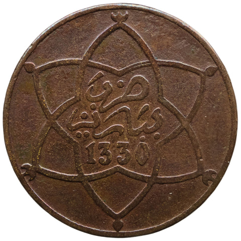 1912 10 Mazunas Morocco Coin Yusuf Paris Mint