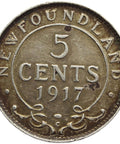 Reverse legend: NEWFOUNDLAND 5 CENTS 1917 C