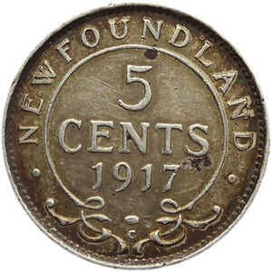 1917 5 Cent Newfoundland Canada Coin Silver George V
