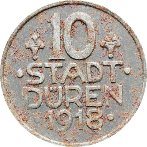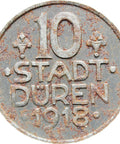 Obverse legend: “10 • STADT • DÜREN • 1918 •”