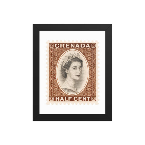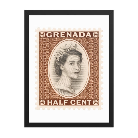 Grenada Quenn Elizabeth II Half Cent Postage Stamp Framed Poster