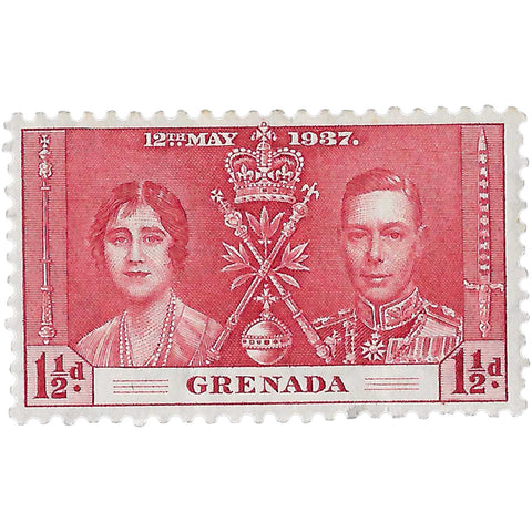 1937 1½d Grenada Stamp King George VI and Queen Elizabeth