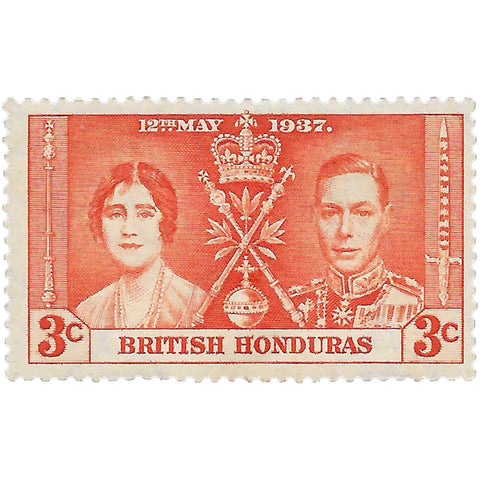 1937 3c British Honduras Stamp King George VI and Queen Elizabeth