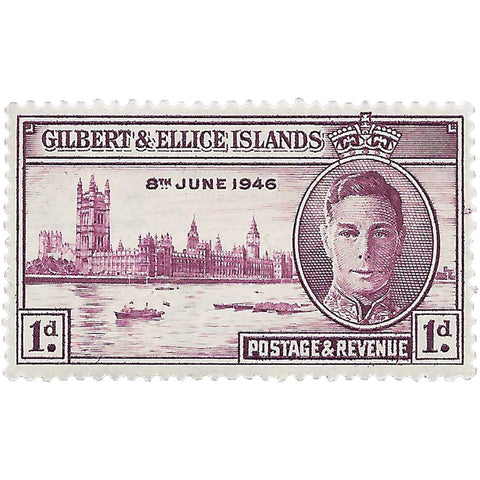 1946 1d Gilbert and Ellice Islands Stamp King George VI and Houses of Parliament