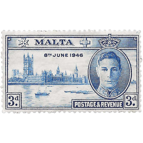 1946 3d Malta Stamp King George VI and Parliament Buildings